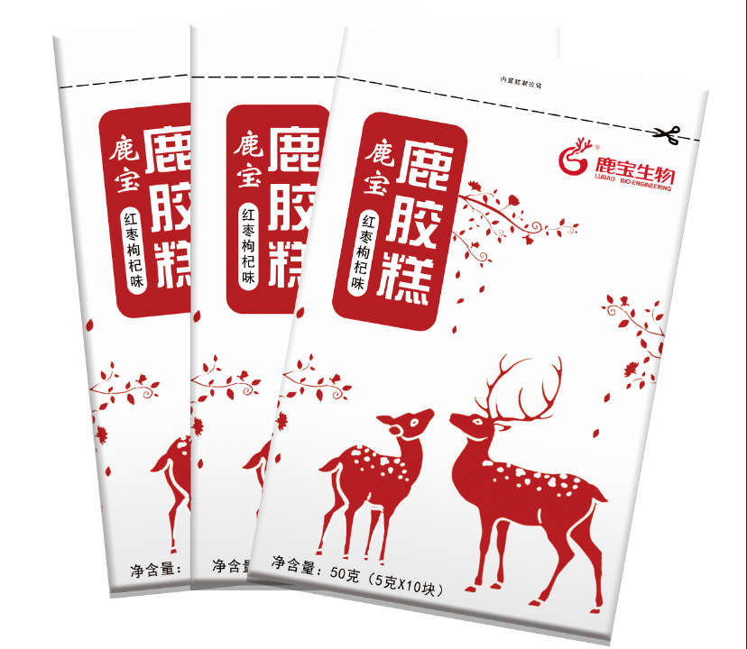 【配 料 表】養(yǎng)殖梅花鹿鹿皮、核桃仁、黑芝麻、麥芽糊精、冰糖、黃酒、紅棗、枸杞、大豆油